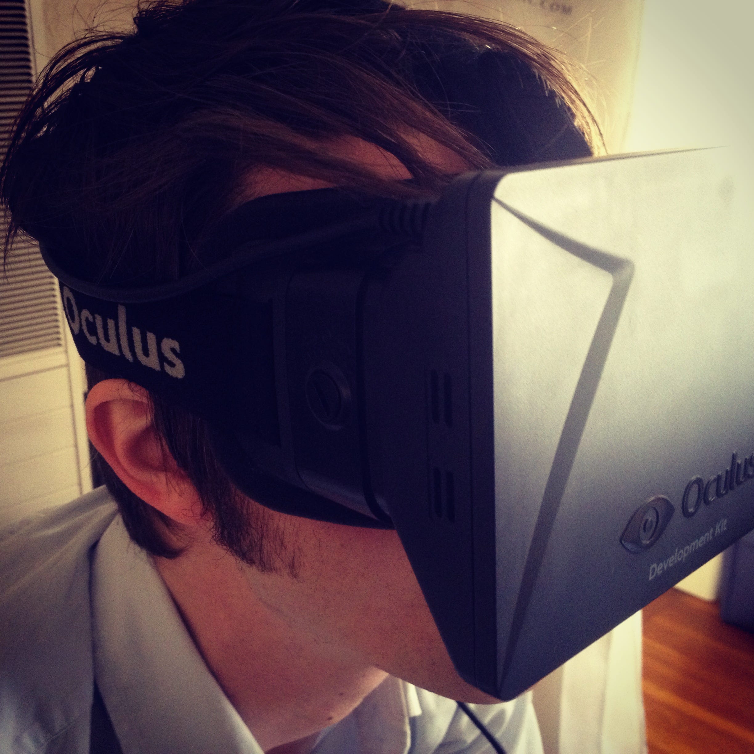 Don’t panic. Stay loose. Smoke a joint. I pick up the Oculus DK1 my friend Mike gave me to try. It’s like strapping a brick to my face. I launch Titans, a virtual tour of our solar system. It’s rough—pixelated planets—but as I float past Jupiter, the universe suddenly opens. I am a mote of dust suspended in a sunbeam. Small, yet expansive.